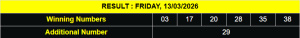 RESULT IRISH TOTO JUMAT ,13 MARET 2026