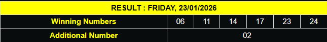 RESULT IRISH TOTO FRIDAY, 23 JANUARY 2026 [5062] SAHHH