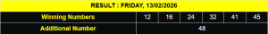 RESULT IRISH TOTO JUMAT ,13 FEBRUARY 2026