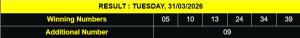 RESULT IRISH TOTO TUESDAY, 31 MARCH 2026 [3815] SAHHH