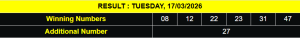 RESULT IRISH TOTO TUESDAY, 17 MARCH 2026 [4458] SAHHH