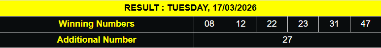 Diurutkan : 08-12-22-23-31-47 BOLA TAMBAHAN 27