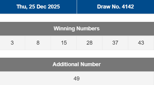 RESULT SGP TOTO THURSDAY, 25 DECEMBER 2025 [3571] SAHHH