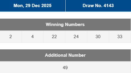 RESULT SGP TOTO SENIN, 29 DECEMBER 2025