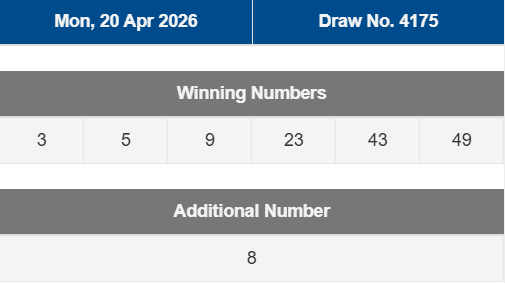 RESULT SGP TOTO SENIN, 20 APRIL 2026