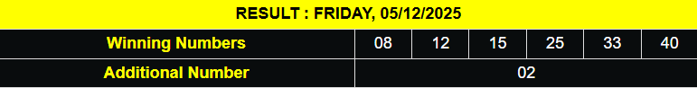 RESULT IRISH TOTO FRIDAY, 05 DECEMBER 2025 [7820] SAHHH