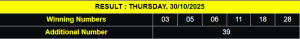 RESULT IRISH TOTO KAMIS 30 OKTOBER 2025