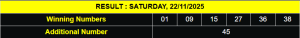 RESULT IRISH TOTO SATURDAY, 22 NOVEMBER 2025