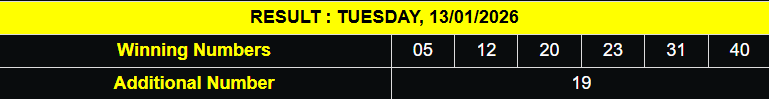 RESULT IRISH TOTO TUESDAY, 13 JANUARY 2026 [2436] SAHHH