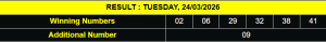 RESULT IRISH TOTO TUESDAY, 24 MARCH 2026