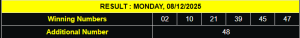 RESULT IRISH TOTO MONDAY, 08 DECEMBER 2025