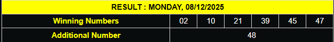 Diurutkan : 02-10-21-39-45-47 BOLA TAMBAHAN 48