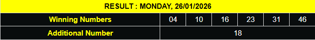 Diurutkan : 04-10-16-23-31-46 BOLA TAMBAHAN 18