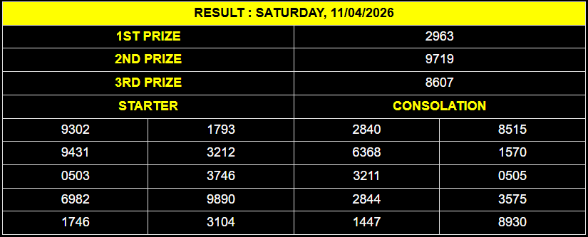 Starter Prize (10) : 3104 (Pasang Rp 1000, hadiah 4Dx500rb/3Dx40rb/2Dx4rb)