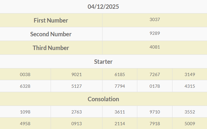 Next Result / Livedraw LOTERIE 4D Siejie KAMIS (11-DECEMBER-2025) 11.05 WIB