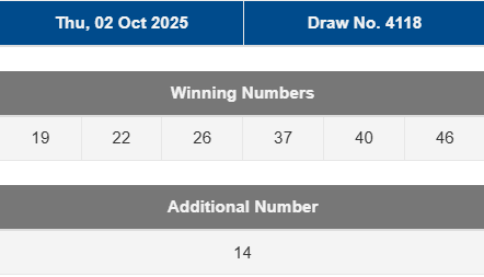 Diurutkan : 19-22-26-37-40-46 bola tambahan 14