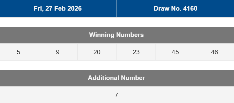 RESULT SGP TOTO JUMAT, 27 FEBRUARY 2026