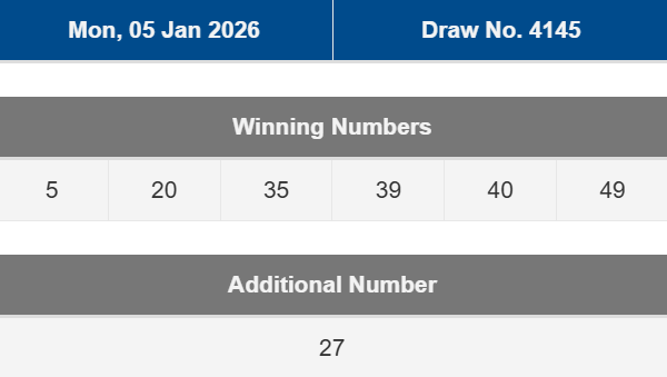 RESULT SGP TOTO KAMIS, 05 JANUARY 2026 [5949] SAHHH