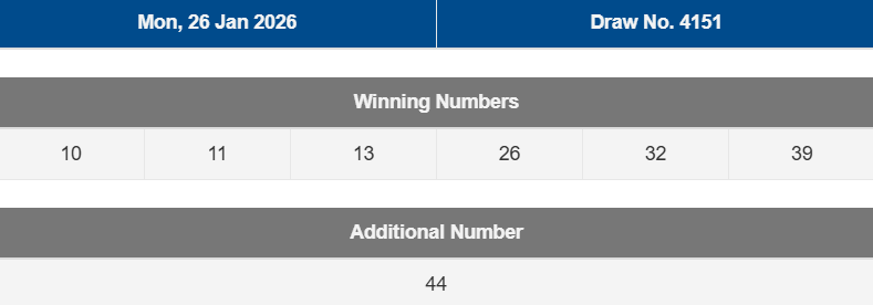 RESULT SGP TOTO MONDAY, 26 JANUARY 2026 [4857] SAHHH